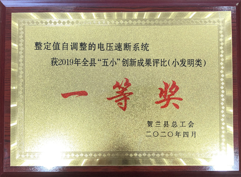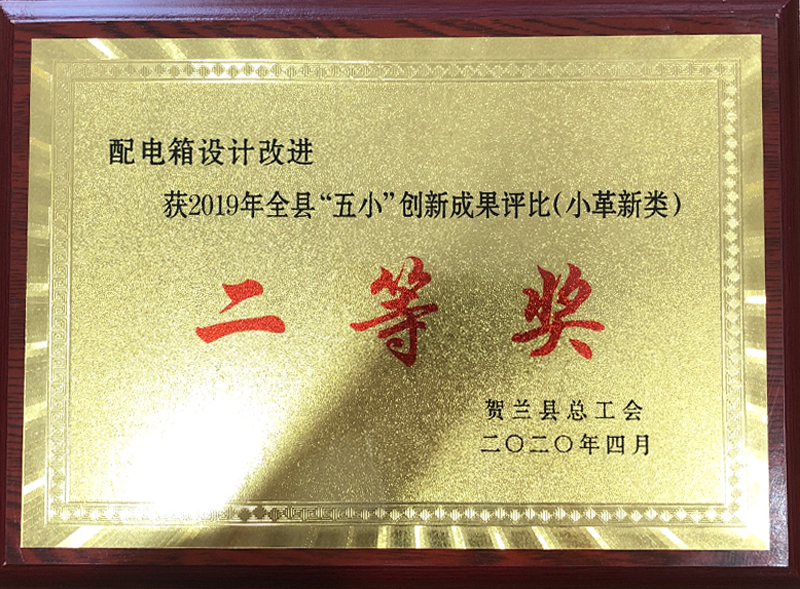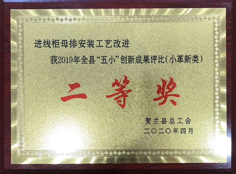 2020進(jìn)線柜母安裝工藝改進(jìn)獲得2019年全縣“五小”創(chuàng)新成果評(píng)比(小革新類(lèi))二等獎(jiǎng)