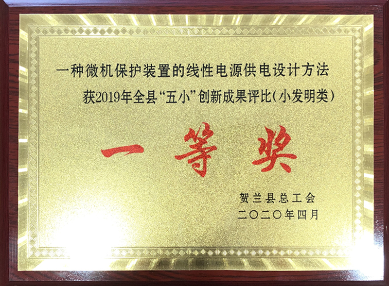 2020一種微機(jī)保護(hù)裝置的線性電源供電設(shè)計(jì)方法-獲得2019年全縣“五小”創(chuàng)新成果評(píng)比(小發(fā)明類(lèi))一等獎(jiǎng)