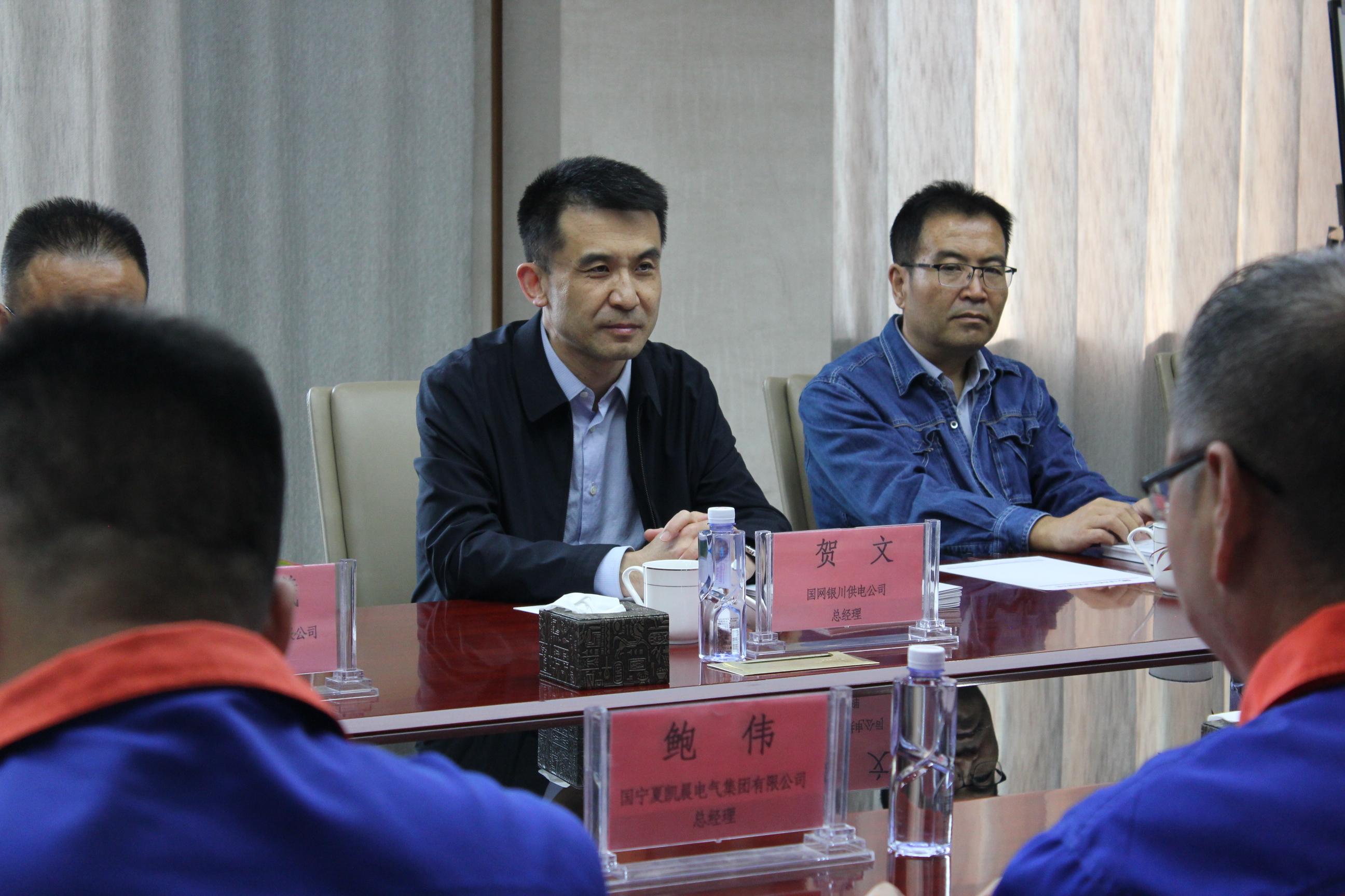 10月15日下午,國(guó)網(wǎng)銀川供電公司總經(jīng)理賀文一行到訪寧夏凱晨電氣集團(tuán)有限公司技術(shù)交流,積極落實(shí)銀川市“百日攻堅(jiān)戰(zhàn)”的安全生產(chǎn)用電事宜。